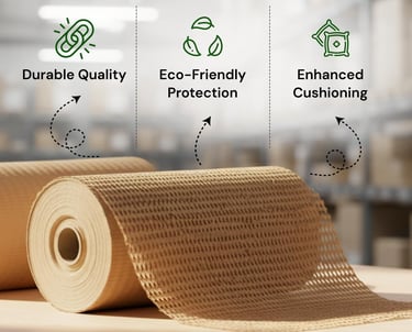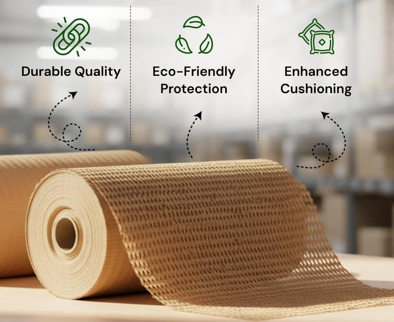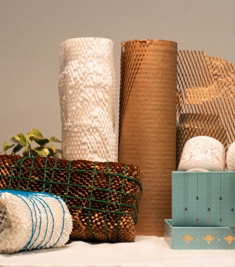Ecocomb Wraps manufactures Honeycomb Paper Packaging, an eco-friendly, 100% recycled protective packaging solution engineered for strength, lightness, and circularity. Our plant combines modern production technology with sustainable practices to deliver high-performance packaging that reduces waste, lowers carbon footprint, and protects products across the supply chain.
